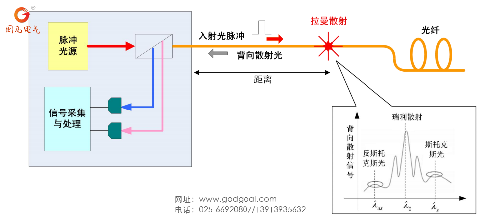GDTS-4 分布式光纤温度在线监测系统是一款基于拉曼背向散射原理和光时域反射技术的分布式温度检测系统,其原理如下图1。