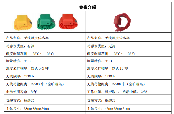 无线测温传感器有多种规格和型号可供选择,可根据现场的实际使用情况进行确认。参数介绍如下图5。