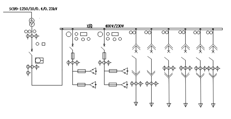 以XX国际学校为例,0.4kV配电系统为单电源进线结构,如下图所示,上级10kV系统降变至0.4kV,一路电源接入,400V 母线带载所有用电负荷,因此供电的连续性和可靠性无法得到有效保证,当单一供电线路出现故障时,容易造成敏感负荷设备的停机或跳闸。因此学校计划增加1路备用电源,实现双电源配电系统,同时配置GTS双电源快切系统,当主电源出现异常时可以在20ms内高速切换到备用电源,保证敏感负载设备连续可靠工作,确保全校教学工作安全稳定的开展。