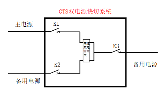 3)出现晃电现象时,经常会出现短时间内多次晃电,那么GTS双电源快切系统完成一次切换后,系统闭锁,需要手动复归,待主电源恢复正常后,手动或自动恢复到主电源带载状态。