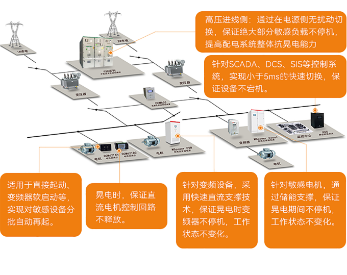 浙江某涤纶聚酯生产线,每年4月~9月期间,雷雨造成电网晃电,平均每月2~3次,经计算一年平均一条生产线损失150~200万,全部八条生产线一年损失巨大。
