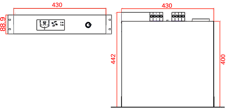 注:1、超过 100A 以上输出电流可以定制,定制机尺寸根据电流规格具体协商标定。